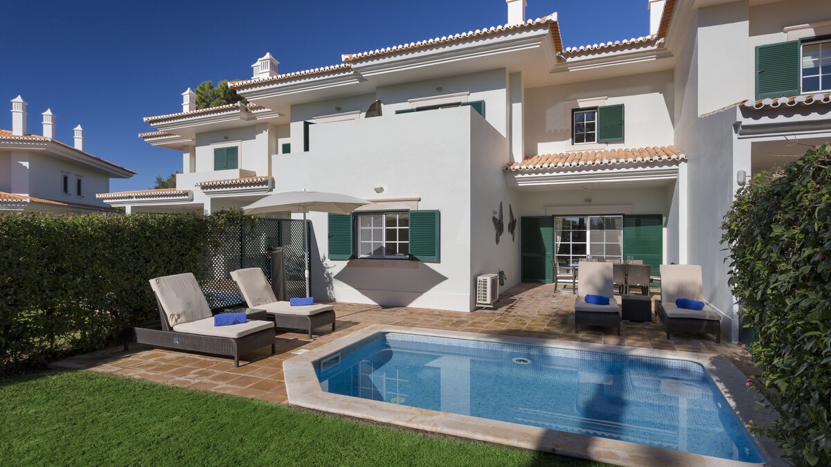 Im Herzen des luxuriösen Ferienortes Quinta da Lago gelegen, bieten diese gut ausgestatteten Immobilien im Martinhal Quinta Club die Unabhängigkeit eines Villenlebens, aber den Komfort eines Hotelaufenthalts. Denen Townhouses bieten das Gute aus beiden Welten, Ihren eigenen Zuhause fern von zu Hause, mit einer Vielzahl von Annehmlichkeiten in unmittelbarer Nähe. Diese zu einem hohen Standard fertiggestellten Immobilien bieten neben einem großen Gemeinschaftspool einen modernen Raum mit Klimaanlage, Internetzugang und privatem Tauchbecken. Dieser Full-Service-Resort bietet auch eine Rezeption, die eine Reihe von Aktivitäten sowie einen Kinderclub buchen kann. Denen Gäste können auch Golf in Quinta do Lago und anderen Golfplätzen an der Algarve spielen. Diese Stadthäuser bieten einen sehr sicheren Rahmen für Ihren Urlaub und eignen sich sehr gut für zwei Gruppen, die gemeinsam Urlaub machen möchten, aber auch ihre eigene Unabhängigkeit haben. Es gibt auch eine Handvoll weiterer Villen auf dem gleichen Grundstück.