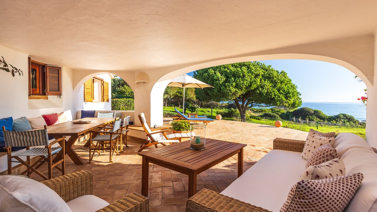 Bitte beachten Sie, dass ein öffentlicher Fußweg über die Vorderseite der Villa zwischen den Gärten und dem darunter liegenden Strand verläuft.