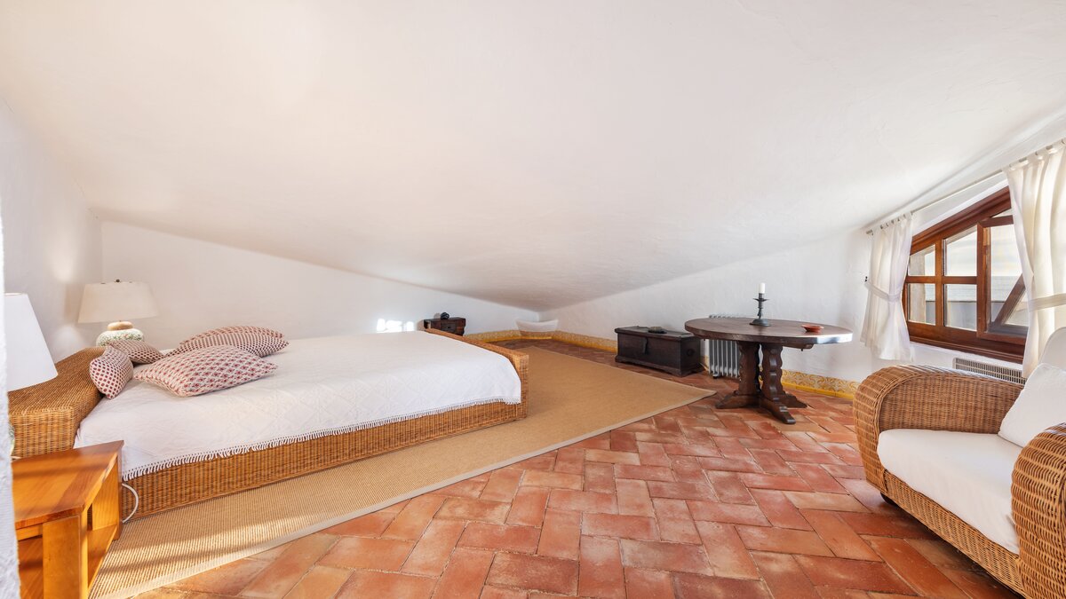 Über eine Außentreppe vom Innenhof gelangen Sie nach oben, um ein ruhiges Wohnzimmer zu finden, in dem Sie lesen können. Ihr Hauptschlafzimmer mit eigenem Bad mit Dusche. Eine private Terrasse bietet einen herrlichen Meerblick.
