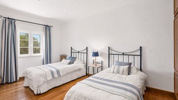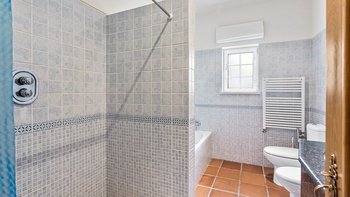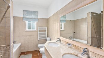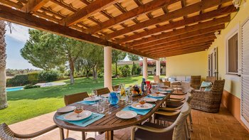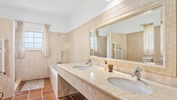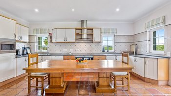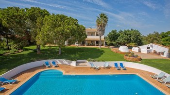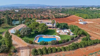Diese geräumige Villa, die sich wunderbar ungestört an ihrem beneidenswert unberührten Ort sonnen lässt, bietet eine allumfassende Atmosphäre der Entspannung, perfekt für ein Familientreffen oder eine Gruppe von Freunden. Nick Faldos neuer Golfplatz Amendoeiras liegt auf einem 40 Hektar großen privaten Grundstück mit Avocado und Zitusbäumen, nur fünf Minuten Autofahrt entfernt. Deren sechs Schlafzimmer der Villa sind modern und komfortabel eingerichtet und verfügen jeweils über ein eigenes Bad, Klimaanlage und Fußbodenheizung unter den edlen Kastanienholzdielen. Deren Herzstück des Hauses ist das große Wohnzimmer, das sich auf eine tiefe und lange überdachte Terrasse öffnet. Dieser dient als Sitz- / Esszimmer im Freien mit Blick auf die Rasenflächen und den großen beheizten Pool, um eine zeitlose ländliche Szenerie dahinter zu erleben. Innerhalb der ummauerten Gärten befinden sich Baumgruppen, die Schatten spenden, und ein Grillplatz, der kunstvoll an einen alten Brotbackofen angepasst wurde. Hinter dem Haus befindet sich ein Tennisplatz in Meisterschaftsgröße, wo Tennistraining organisiert werden kann und es gibt einen schattigen Spielbereich mit Tischtennis und Tischfußball. Deren Villa ist nur eine kurze Autofahrt von Geschäften, Banken und Restaurants in historischen Silves entfernt. Dieser alte maurische Burgstadt beherbergt auch eine Reihe von verschiedenen Festivals im Sommer und verfügt über eine alte Korkfabrik, die heute ein Museum und ein Kulturzentrum und ist, sowie eine Auswahl an preiswerten und lustigen Restaurants und Bars beherbergt. Das Haus ist 10 km von den Sandstränden und es gibt mehrere andere Strände und Städte innerhalb einer kurzen Fahrt erreichbar.