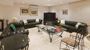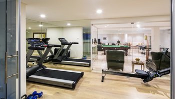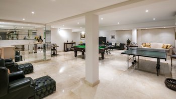 Im Untergeschoss befinden sich zwei weitere Doppelschlafzimmer mit Dusche en suite und ein Zweibettschlafzimmer. Ein Fitnessraum und ein Spielzimmer mit Barbereich, TV, Tischtennis und Billardtisch sind ebenfalls vorhanden.