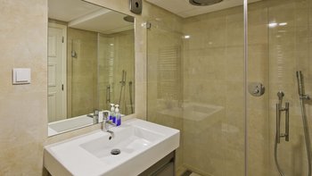 Im Außenbereich können die Gäste die zwei Pools, den Whirlpool und das Türkische Bad nutzen. Auf der Dachterrasse befinden sich ein Essbereich im Freien und ein Loungebereich mit weichen Sitzgelegenheiten, die den perfekten Ort bieten, um den Sonnenuntergang zu genießen.