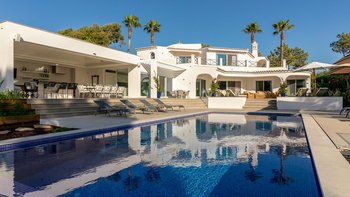 Im Herzen von Quinta do Lago liegt Quinta Monica, eine hervorragende, große moderne Villa mit herrlichem Blick über den Golfplatz Quinta do Lago und herrlichen Stränden in unmittelbarer Nähe.