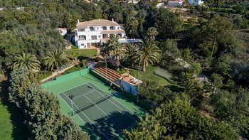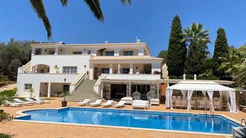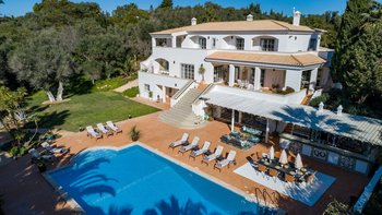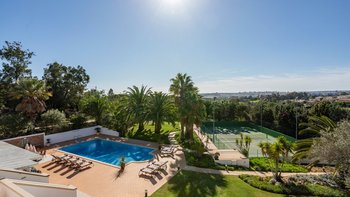 Das Anwesen verfügt über ausgezeichnete Wohnräume im Freien, darunter eine Poolbar, einen Essbereich im Freien und eine Sommerküche. Es gibt auch einen schönen großen Pool, einen Tennisplatz und ein Vier-Loch-Putting-Green. Dessen Villa befindet sich in der Nähe des Meia Praia Strandes sowie mehrere nahe gelegene Golfplätze.