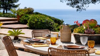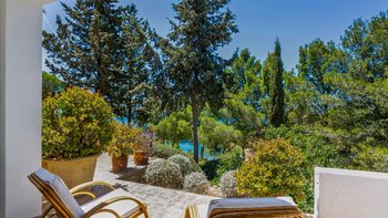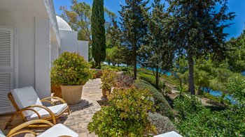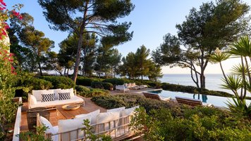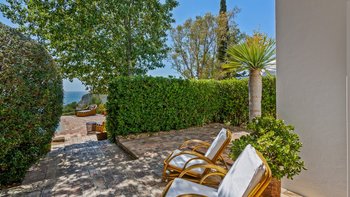 In bester Lage mit Blick auf das Meer bietet diese außergewöhnliche Luxusvilla ruhige Gärten, einen privaten Tennisplatz, einen Kochservice inklusive und einen Weg über das eigene Grundstück zum Strand.