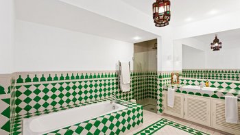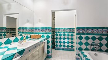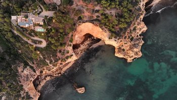 Die Villa Mourisco liegt auf einer Klippe an der Küste, nur 1 km von Carvoeiro entfernt. Sie liegt in einem vier Hektar großen, geschlossenen und gepflegten Grundstück mit Palmen und Pinien, Oliven- und Feigenbäumen und schattigen Terrassen, die einen atemberaubenden Blick auf das Meer und den Sonnenuntergang bieten. Der Eingangshof der Villa ist eine Vorschau auf ihr lockeres Tempo und ihren künstlerischen Stil, mit einem Wasserspiel, Zitrusbäumen in riesigen Töpfen, tiefen Kissen auf eingebauten Sitzgelegenheiten und einem Frühstückstisch im Freien. Innerhalb des Hauses verschmilzt innovatives Design mit kolonialen Landhausmöbeln; Das Wohnzimmer ist elegant und doch ungezwungen, mit faszinierenden Kunstwerken, einem Babyflügel und Glasschiebetüren zur Gartenterrasse; Der Kochservice ergänzt eine voll ausgestattete Pantryküche; und die zwei Doppel- und zwei Zweibettschlafzimmer verfügen jeweils über ein eigenes Bad oder eine Dusche.