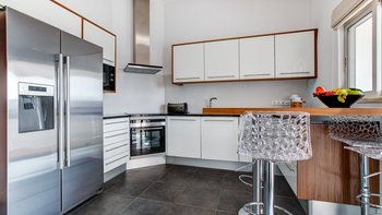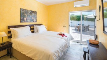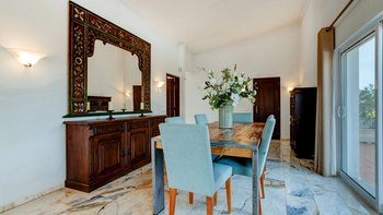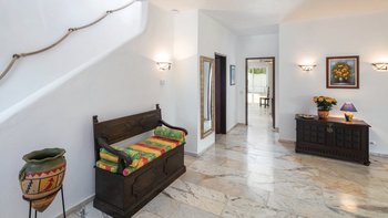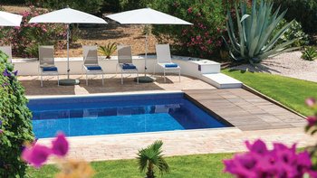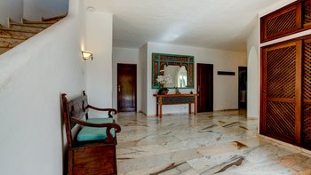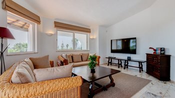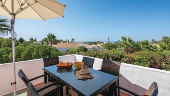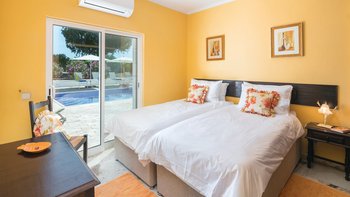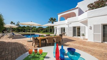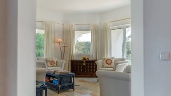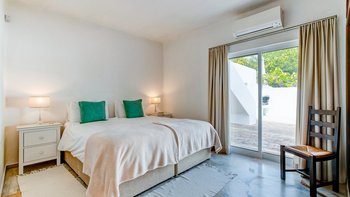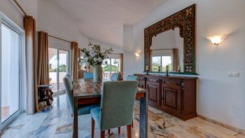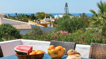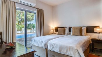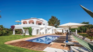 Nicht weit von einigen der besten Strände der Algarve entfernt, ist diese klassische Villa ein großartiges Beispiel für traditionellen portugiesischen Stil. Sie ist abgerundet und weiß getüncht, mit einem wunderschönen, aber einfach gestylten Äußeren und es gibt eine riesige Rundum-Terrasse, die sich im ersten Stock mit Blick auf das Meer und den Garten sonnen kann. Denen von Bougainvillea gesegneten Gärten sind wunderschön gepflegt, und es gibt einen himmlisch blau gefliesten Swimmingpool draußen (gegen Aufpreis beheizbar). Mit vielen Liegen und Brollies gibt es viele Plätze zum Sonnenbaden auf der riesigen Sonnenterrasse, neben einem schönen Außentisch für Mahlzeiten im Freien. Ins Innere bietet die Villa eine Mischung aus traditionellem maurischen Stil mit modernem Komfort. Es ist traditionell, aber klassisch, mit vielen antiken Elementen und reduzierten Wänden. Deren Hauptwohnbereiche befinden sich alle im ersten Stock – es gibt eine moderne Küche mit Frühstückstheke und Zugang zur Veranda mit herrlichem Meerblick sowie einen großen Wohn-/Essbereich mit hohen Decken und einem modernen Smart-TV. Es gibt auch eine Gästetoilette mit Dusche auf dieser Etage. Gehen Sie nach unten zu den Schlafzimmern – es gibt zwei Zweibett-Zimmer mit Gemeinschaftsbad und ein Hauptschlafzimmer mit Kingsize-Bett mit einem modernen, ebenerdigen Duschbad. Aller Zimmer folgen einem ähnlichen traditionellen Stil und verfügen über Terrassentüren, die zum Pool oder zum schönen Garten führen.
