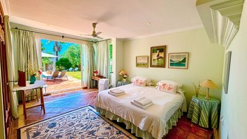 Die Finca la Alameda ist ein schönes altes Haus in einer ruhigen Landstraße im Llano de la Cruz-Tal. Sie ist wunderschön in einem frischen Landhausstil eingerichtet, der genau zu ihrer Lage passt. Dessen Erdgeschoß fließt durch weite Torbögen vom einladenden Wohnzimmer zum fröhlichen Essbereich, während französische Türen auf die Terrassen mit Blick auf den Garten führen, die zum Entspannen eingerichtet sind und voller Topfpflanzen sind, die Farbe und Charakter verleihen. Die Schlafzimmer sind groß und mühelos elegant, die meisten mit eigenem Bad oder Dusche und Zugang zu einer Terrasse oder einem Balkon. Zusätzlich zum 15 Meter langen Swimmingpool beherbergt das Grundstück Walnussbäume, nahegelegene Olivenhaine, einen Gemüsegarten und Fischteiche und einen herrlichen Blick auf die umliegenden Hügel. Auf beiden Seiten der Villa, jede mit eigenem Pool, konnten die kleineren Villen El Laurel und La Rondita zusammen gebucht werden, um einen ausgezeichneten Ort für eine große Gruppe zu bilden. Ronda ist nur 5 km entfernt für Geschäfte, historische Sehenswürdigkeiten und großartige Tapas-Bars.