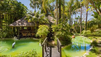 Die Anlage des Rodeo Alto ist ein fantastisches Zeugnis seines preisgekrönten Gärtners und umfasst mehrere Sitz- und Essbereiche, einen Swimmingpool, eine Sonnenterrasse und eine Pergola am Pool und einen Unterhaltungsbereich im thailändischen Stil mit Küchenzeile, Bar und stilvollem Essen, der über eine Holzbrücke über einen ruhigen Teich erreichbar ist. Dessen Haus selbst ist nicht weniger beeindruckend, seine glamourösen, übergroßen Zimmer sind in einer eklektischen Mischung aus Stilrichtungen eingerichtet, die von coolem und modernem Chic bis hin zu ländlicher Eleganz und maurischer Lebendigkeit reichen.