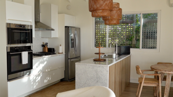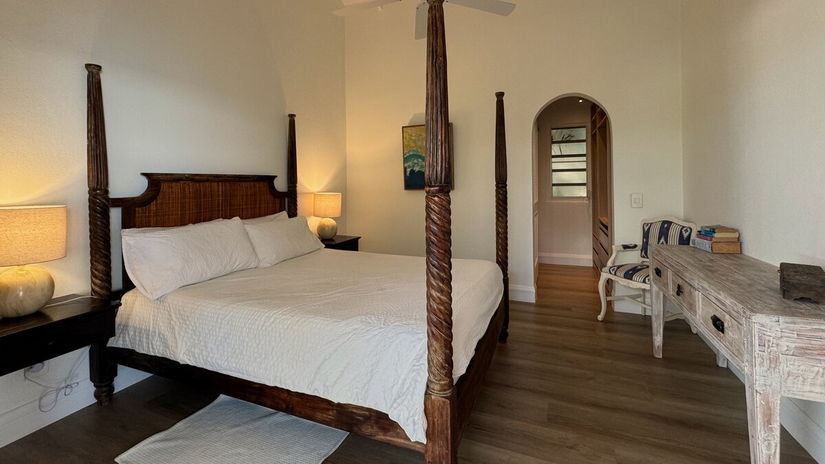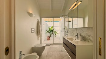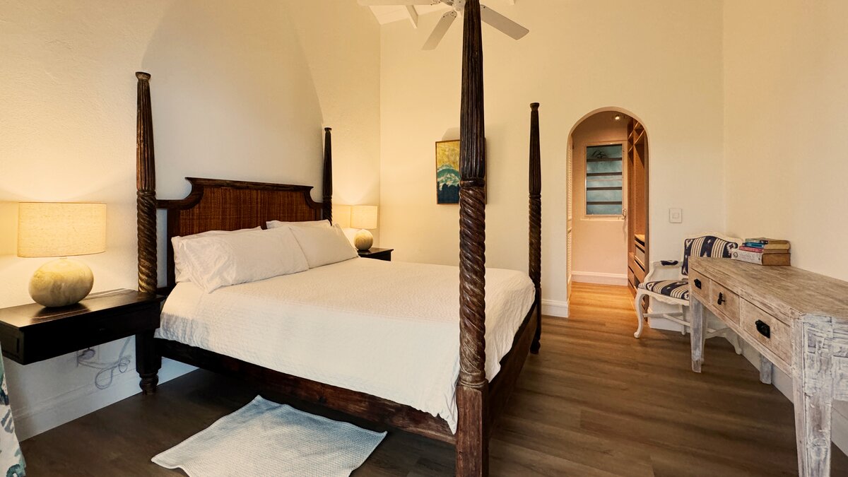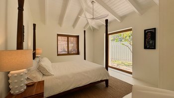 Die Residenz ist in ein Haupthaus und ein separates Nebengebäude unterteilt, was sie ideal für Gruppen macht, die zusammen reisen und trotzdem unabhängig sein möchten. Deren Haupthaus verfügt über drei wunderschön gestaltete Schlafzimmer: eines mit einem Kingsize-Bett und zwei mit Queensize-Betten. Jedes dieser Schlafzimmer ist en-suite und bietet Zugang zu einer Terrasse, mit zusätzlichen Indoor- und Außenduschen in den Badezimmern. Deren in sich geschlossene Nebengebäude verfügt über zwei weitere Queensize-Schlafzimmer mit eigenem Bad, von denen jedes auch Zugang zur eigenen Terrasse hat.