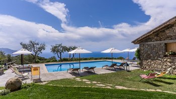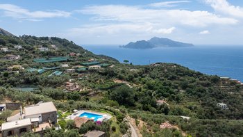 Das Äußere der Villa entfaltet sich wie ein Meisterwerk in mediterranen Farbtönen. Der private Pool befindet sich zwischen sorgfältig positionierten Liegen und bietet einen Blick auf das Meer, das sich bis in die Unendlichkeit erstreckt. Denen Terrassen und die umliegenden Gärten bieten unterschiedliche Umgebungen – in einem Moment intim, im nächsten weitläufig – perfekt für ein verweilendes Abendessen, spontane Gespräche oder ruhige Betrachtung. Deren Villa verfügt auch über eine ausgezeichnete Lage. Ein gutes Restaurant ist 700 m entfernt (die letzten 300 m bergauf auf dem Rückweg!) und liegt nur sieben Kilometer vom kristallklaren Wasser der Bucht von Nerano, fünfzehn von den dramatischen Klippen von Positano und zwölf vom pulsierenden Herzen von Sorrento entfernt.