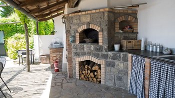 Draußen ist die Aussicht unglaublich, und der gepflegte Garten der Villa ist mit Obstbäumen geschmückt, während der Infinity-Pool, Liegestühle, Tischtennisplatte und Außendusche diesen Raum vervollständigen. Eine Terrasse bietet zusätzliche Sitz- und Essbereich im Freien, die natürlich durch die Außenküche, den Grill und den Holz-Brennofen schön und schön ergänzt werden. Deren Benutzung des Pizzaofens sollte idealerweise nur unter Aufsicht des Pizzakochs erfolgen.