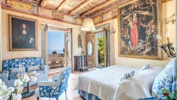 Moderne Annehmlichkeiten und ein hoher Servicestandard verstärken den Komfort und die Großartigkeit dieses historischen Hauses. Denen geräumigen Zimmer sind großzügig mit kunstvoller Malerei, riesigen Porträts, aufwändigen Artefakten und großen Kronleuchtern ausgestattet. Deren wunderschöne Küche ist voll von altertümlichem Charakter, aber voll moderner Geräte. Im offenen Wohn- und Esszimmer schaffen farbenfroh aufeinander abgestimmte Möbel und Stoffe ein Gefühl kunstvoller Ungezwungenheit, ergänzt durch ein Bose-Soundsystem, WLAN und Großbild-Satellitenfernsehen. Und jedes der zwölf Schlafzimmer verfügt über eine Klimaanlage und ein eigenes Bad. Die Außenbereiche der Villa liegen in den steilen Hängen und bieten einen herrlichen Blick auf das Meer und umfassen einen schönen Garten mit Rasen und Schatten, einen kleinen Frühstücksbereich mit lustigen Stoffen und hellen Bodenfliesen, eine große schattige Terrasse, die elegant eingerichtet ist, um zu speisen und im Freien zu entspannen, und einen privaten Infinity-Pool in einem hübsch bepflanzten Innenhof. Und all das ist nur zehn Minuten zu Fuß vom Zentrum von Positano entfernt.