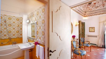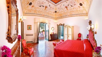 Die hübsche rosafarbene Residenz in der fantastischen Umgebung ist wirklich vorhanden, voller Charakter und Eleganz, mit bemalten Decken und Terrakotta-Böden, Marmorkaminen und kunstvollen, aber fein gearbeiteten antiken Möbeln. Dessen dreistöckige Villa ist von Licht durch die vielen Fenster erfüllt, die zu Balkonen und Terrassen führen, die mit Kaskaden von purpurrotem Bougainvillea ausgestattet und ausgestattet sind. Aller Zimmer und Suiten und eine herrliche Aussicht. Deren Hauptterrasse ist breit genug, um sich gemütlich zu entspannen und verfügt über einen Pool und Swimmingpool von einer Größe, die in Positano, wo es viel Platz gibt, sehr ungewöhnlich ist. Auf Anfrage steht ein Küchenchef zur Verfügung, um Ihren Aufenthalt im magischen Positano besonders und unvergesslich zu machen.
