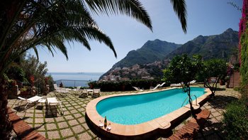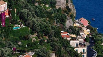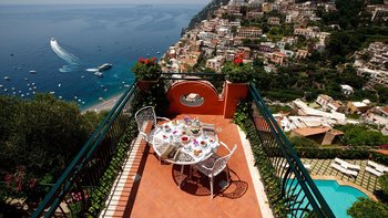 Hoch über der atemberaubend schönen Stadt Positano gelegen, könnte dieses Haus fast eine Erfindung der Phantasie sein, so dramatisch und theatralisch ist sein Aussehen.