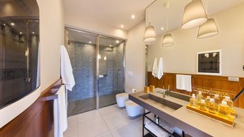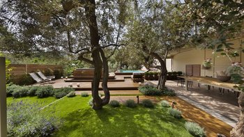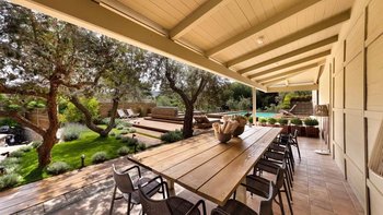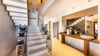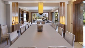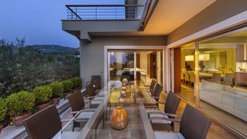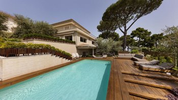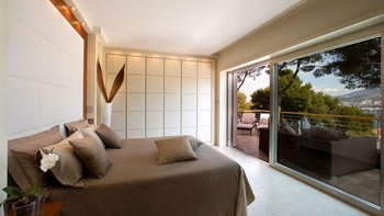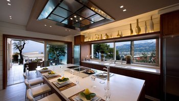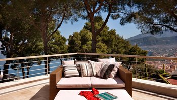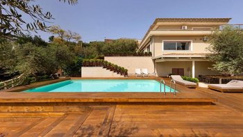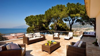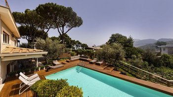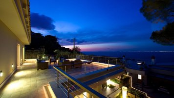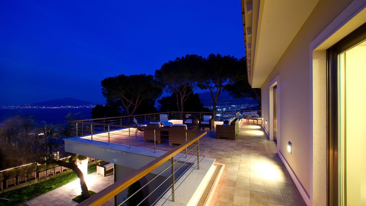 Umgeben von Olivenbäumen in den malerischen Hügeln in der Nähe von Sorrent, bietet die Villa Sorrentina einen atemberaubenden Panoramablick auf den Golf von Neapel. Dessen minimalistisches und stilvolles Dekor ist überall vorhanden, mit Glasschiebetüren, die in der wunderschönen Umgebung einladen. Es gibt einen geräumigen Wohnbereich, der sich zur Terrasse öffnet, und einen eleganten Esstisch im Esszimmer für bis zu 12 Gäste zusammen. Deren moderne und voll ausgestattete Küche verfügt über eine Insel mit Platz für ein informelles Frühstück mit atemberaubender Aussicht. Aller sechs Schlafzimmer sind mit Kingsize-Badezimmern ausgestattet; eines der Schlafzimmer verfügt über eine eigene Sauna, während das Haupt-Doppelzimmer über einen Whirlpool für ultimative Entspannung und eine große Terrasse mit bequemen Sitzgelegenheiten verfügt.