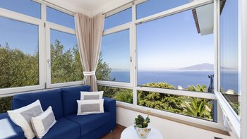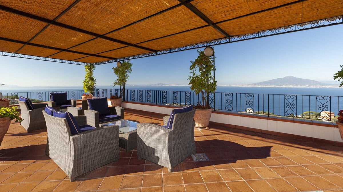 Eine idyllische Villa inmitten der natürlichen Schönheit der Hügel von Sorrent bietet die Villa Vulcano einen unglaublichen Blick über den Golf von Neapel bis zum Vesuv.