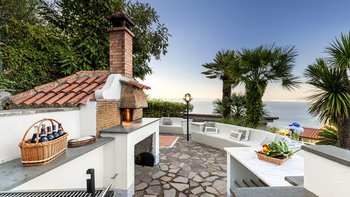 Die Unterkunft befindet sich auf der oberen Ebene und ist über eine Treppe vom Parkplatz aus erreichbar. Deren Villa verfügt über mehrere Terrassen mit Meerblick und die Gäste lieben es, sich am Grillplatz zu treffen und die Dachterrasse ist ein fantastischer Ort, um sich zu entspannen und Kontakte zu knüpfen, nachdem Sie den Poolbereich genossen haben. Deren Gäste speisen auf der Panoramaterrasse neben der Küche. Das Panorama-Wohnzimmer teilt auch den wunderschönen Blick auf die Küste. Jedes der fünf Schlafzimmer der Villa ist sehr gut ausgestattet und mit schönen Möbeln eingerichtet. Deren drei Schlafzimmer der Hauptvilla führen auf einen gemeinsamen Balkon mit weitem Meerblick, während die restlichen zwei Schlafzimmer neu renoviert wurden und sich im Gästeanbau befinden. Es gibt auch ein privates Fitnessstudio auf Parkebene, nur dreißig Stufen von der Hauptvilla entfernt jeden Tag, komplett mit einer Reihe von Geräten für die Gäste.