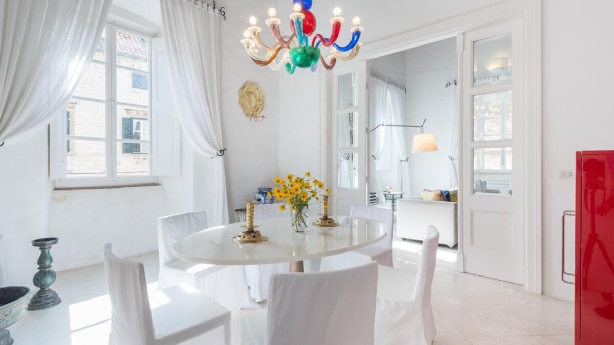 Die Villa Dubrovnik liegt im Herzen von Dubrovnik, direkt an der Hauptstraße von Stradun, und bietet einen wirklich einzigartigen Aufenthalt mitten im Geschehen. Dieser Villa bietet einen Vorgeschmack darauf, wie sich die Königshäuser, die hier vor Jahrhunderten lebten, gefühlt haben müssen, mit einer imposanten Steinfassade und exquisiten Innenräumen. Deren Anwesen ist in jeder Hinsicht beeindruckend, mit einer unglaublich breiten Steintreppe, die vier Etagen verbindet, freiliegenden Holzbalken, gewölbten Türen, hohen Decken, modernen Kunstwerken, Glasleuchtern und antiken Möbeln – alles kombiniert mit modernem Komfort. Denen großen Fenster lassen viel Tageslicht in die drei geräumigen Schlafzimmer mit eigenem Bad, von denen jedes den Blick auf den Stradun bietet. Es gibt auch ein elegantes Wohnzimmer, eine voll ausgestattete Küche und einen Büroraum.