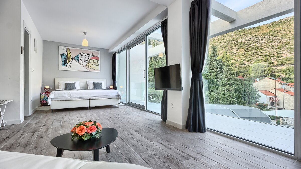 Die Villa Poppy liegt etwas mehr als 1 km vom nächsten Strand entfernt und genießt von ihrer privilegierten Lage in Dubrovnik aus einen herrlichen Meerblick. Dessen moderne Inneneinrichtung zeigt Stil und Komfort gleichermaßen und ist in einer geschmackvollen Farbpalette von kühlen Grautönen und einer Mischung aus Marmorfliesen und grauen Holzfußböden dekoriert. Ideal für große Gruppen. Dessen Layout dieser Villa ist ideal, um im Urlaub Kontakte zu knüpfen, mit einem offenen Wohn- und Essbereich, der bereit ist, die Aussicht zu genießen und von einer modernen Küche serviert wird. Eine lustige Tafelwand enthält nützliche Informationen wie den WiFi-Login und bietet Platz, um Ihren Mitreisenden eine Bewertung zu hinterlassen oder Notizen zu schreiben. Es gibt fünf Doppelschlafzimmer, alle mit eigenem Bad und raumhohen Fenstern, die einen ruhigen Blick auf die Landschaft von Dubrovnik und das Meer bieten. Beginnen Sie Ihren Tag mit einem Training im eigenen Fitnessraum der Villa oder gönnen Sie sich einen Hauch von Verwöhnung in der traditionellen Sauna.