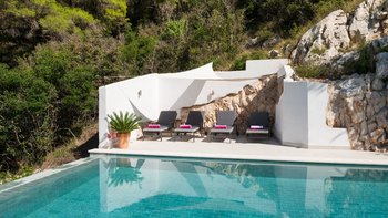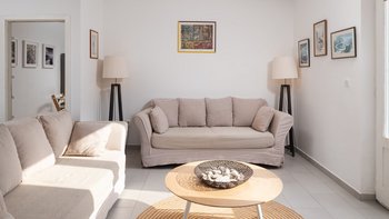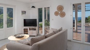 Im Inneren ist die Villa Gaze so gestaltet, dass sie Licht und Ausblick maximiert. Ausdehnende französische Fenster öffnen sich auf Terrassen und Balkone und schaffen einen nahtlosen Übergang zwischen Innen- und Außenbereichen. Deren neu installierte Küche ist mit eleganten Marmorarbeitsplatten und modernen Geräten ausgestattet, die sich ideal für kulinarische Entdeckungen eignen. Deren Wohnzimmer bietet einen komfortablen Ort zum Entspannen, während sechs klimatisierte Schlafzimmer und vier luxuriöse Bäder für Komfort für alle Gäste sorgen.