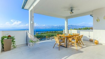 Die Villa Miran ist eine wunderschöne Familienvilla mit einem eigenen beheizten Pool, einer großen Terrasse und herrlichem Meerblick.