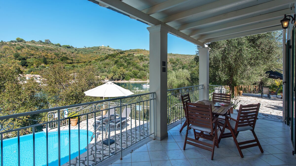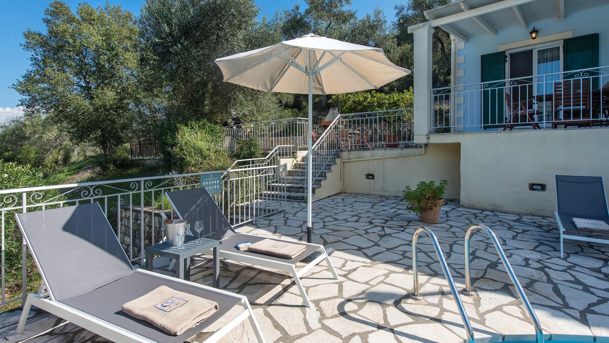 In der Nähe des Wassers auf der niedrigen Landzunge, die die Hufeisenbucht von St. Stephano bildet, teilt sich dieses attraktive Haus das Vorgebirge mit seinen beiden Schwestervillen Fotoula und Stephanos. Denen drei sind sehr privat und völlig unabhängig voneinander, obwohl zwei (oder alle) zusammen für große Gruppen oder große Familientreffen gebucht werden könnten. „Eftihia“ bedeutet übersetzt „gutes Glück“, und diese Familienvilla befindet sich sicherlich in einem glücklichen Ort, nur 100 Meter vom Hafen mit seinen vielen gemütlichen Tavernen und fünf Minuten zu Fuß vom künstlich angelegten Strand des Dorfes entfernt.Der Villa auf Split Ebene verfügt über ein offenes Wohn-/Esszimmer und eine Küche, die leicht über dem Pool angehoben wird und auf eine schattige Veranda führt, auf der man im Freien speisen kann. Es gibt zwei Zweibett-Schlafzimmer und zwei Duschräume auf der unteren Poolseite. Deren Haupt-Doppelzimmer befindet sich auf der obersten Etage und verfügt über ein eigenes Bad und einen eigenen Balkon, von dem aus Sie die Aussicht genießen können. Der acht Meter lange Infinity-Pool verfügt über Liegen auf seiner gepflasterten Umrandung und direkt darüber befindet sich ein geräumiger Grillplatz mit Schattenspendenden Bäumen.
