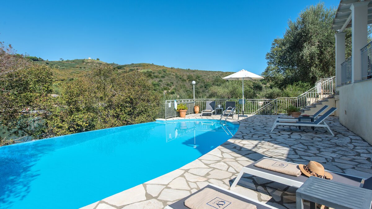Ein sehr hübsches Haus mit einem privaten Infinity-Pool, diese Familienvilla auf Korfu ist perfekt für dörfliche Einrichtungen positioniert, nur wenige Schritte von der Uferpromenade des malerischen St. Stephano entfernt.