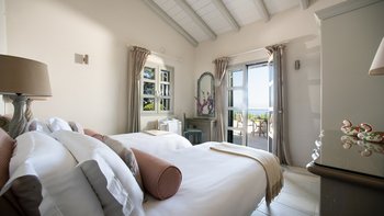 Die schicke Master-Suite verfügt über Flügeltüren zu ihrer eigenen, unterhaltsamen Terrasse mit Tischtennisplatte, die Flexibilität für Familien oder Gruppen von Freunden bietet. Jedes der drei Zweibett-Schlafzimmer kann zu einem Super-Kingsize-Bett gemacht werden. In den baumschattenden Hanggärten befindet sich ein 12-Meter-Infinity-Pool, von dem aus man die herrliche Aussicht genießen kann, verbunden mit einem Poolhaus mit Küchenzeile und Außendusche.