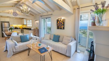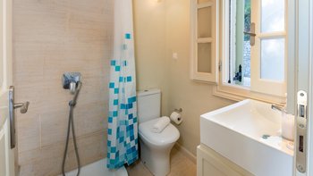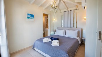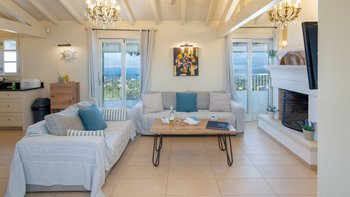 Mit einem weitreichenden Blick über Olivenhaine bis hin zum Meer von der umlaufenden Terrasse und dem Infinity-Pool ist Moira wie ein Hauch von frischer Luft. Eine ausgezeichnete Wahl für einen Familienurlaub, dieses aus Stein erbaute Anwesen ist durchdacht sowohl für den Innen- und auch für den Außenbereich geplant. Dessen stilvolle und moderne Villa ist in einem frischen weißen Dekor mit grauen Holzbalkendecken und modernen Einrichtungen für zusätzlichen Komfort eingerichtet. Ins Innere öffnet sich die offene Küche, der Wohn- und Essbereich zu einer wunderschönen Terrasse mit einem Esstisch für Mahlzeiten im Freien und einem gemütlichen Sitzbereich, um bei Sonnenuntergang einen Drink zu genießen und die Aussicht zu bewundern. Ein Doppelschlafzimmer mit Dusche en suite und ein Zweibettschlafzimmer mit Bad en suite sind von beiden Seiten des Wohnzimmers geöffnet und beide haben direkten Zugang zur Terrasse. Deren untere Erdgeschoss, auf Pool-Ebene, ist nur von außen zugänglich und verfügt über ein Zweibettschlafzimmer mit kleinem Wohnzimmer und Dusche en suite. Dieses unabhängige Zweibettschlafzimmer öffnet sich zu einem Sitzbereich im Freien auf der unteren Terrasse. Denen Strände, Geschäfte, Tavernen und das Nachtleben von Kassiopi sind nur 5 Fahrminuten entfernt.