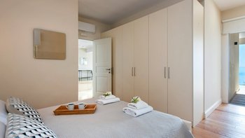 Wenn Sie nach oben in den ersten Stock gehen, finden Sie zwei Doppelschlafzimmer und zwei Zweibettschlafzimmer, jedes mit einem Duschbad en suite und jedes Zimmer öffnet sich auf eine möblierte Gemeinschaftsterrasse. Deren Hauptschlafzimmer befindet sich ebenfalls auf dieser Etage und bietet ein geräumiges Duschbad und eine große private Terrasse. Die Strände Kalami und Kouloura sind leicht zu erreichen, und die Villa ist 5,5 km von Kassiopi und 5,8 km von San Stephano entfernt.
