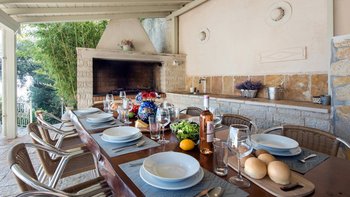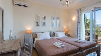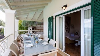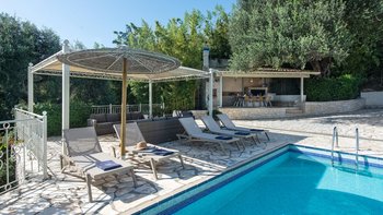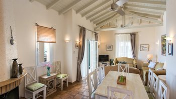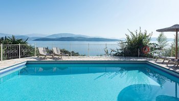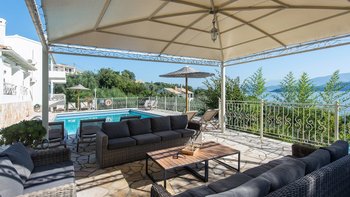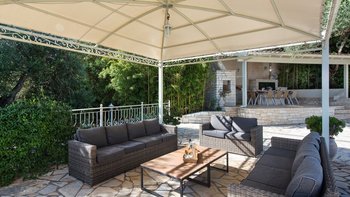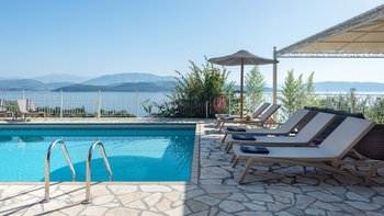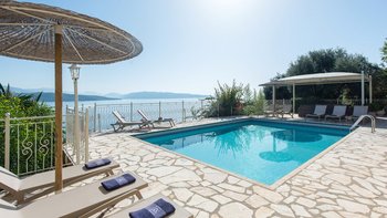 Die Einrichtung und Einrichtung sind überwiegend in weißem, gekalktem Holz und sanften neutralen Farbtönen gehalten, verleiht dieser gemütlich-lässigen Villa ein Meersalz-Feeling, das durch die Tatsache noch verstärkt wird, dass jedes Zimmer und jede Terrasse einen herrlichen Blick auf das Meer hat. Ein Weg führt von Triton direkt hinunter zu einer kleinen Kiesbucht, die von flachen Felsen umsäumt ist und von kristallklarem Wasser umspült wird. Der Strand, die Geschäfte und Restaurants in St. Stephano sind nur 250 Meter zu Fuß entfernt. Und die Villa verfügt über einen eigenen beheizbaren Pool mit einem großen Pavillon am Pool, der attraktiv aus gepolstertem Rattan eingerichtet ist, um ein Wohnzimmer im Freien zu bilden. Eine überdachte Essterrasse mit Blick auf den Pool und die Aussicht und ein eingebauter Grill ist eine weitere Ermutigung für den Outdoor-Lifestyle, während innerhalb der Villa ein offenes Wohnzimmer einen geselligen sozialen Ort bildet. Es gibt zwei Zweibett- und zwei Doppelschlafzimmer; ein fünftes Zimmer im Gästehaus bietet zusätzliche Privatsphäre, mit eigenem Wohnbereich und eigener Küchenzeile; und jedes der Schlafzimmer verfügt über ein eigenes Bad oder eine Dusche, eine Klimaanlage und einen privaten Balkon oder eine Terrasse. Triton ist ein schöner Ort für einen entspannten Aufenthalt und liegt nur 6 km von einem Tempowechsel im lebhaften Kassiopi entfernt.