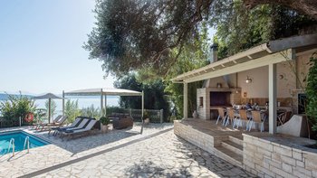Diese Familienvilla auf Korfu liegt in einer wunderschönen Lage am Wasser, nur einen kurzen Spaziergang von den Geschäften und Restaurants von St. Stephano entfernt und bietet direkten Zugang zu einem kleinen Strand und eine großartige Einrichtung für eine Gruppe von Freunden.