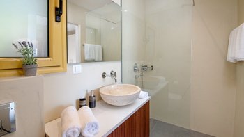 In einer begehrten Lage befindet sich diese elegante Villa in den Hängen oberhalb von St. Stephano, ruhig gepolstert zwischen alten Bäumen und dennoch in der Nähe des hübschen Hafendorfes darunter. Villa Felicia hebt sich mit ihren purpurroten Wänden, Säulenterrassen und Mosaik-Infinity-Pool und Jacuzzi von der Masse ab. Im Inneren hingegen ist sie in neutralen Farbtönen gehalten und bietet ein minimalistisches, modernes Ambiente. Dessen offene Küche/Esszimmer der Villa ist durchgehend klimatisiert und befindet sich auf einer erhöhten Ebene mit Türen zu einer Terrasse im Freien mit Blick auf die wunderschöne Bucht. Unten, auf beiden Seiten des Pools – ideal für ein morgendliches Bad – sind zwei Doppelschlafzimmer jeweils nur vom Garten aus zugänglich. Die oberste Etage des Hauses teilt sich ein drittes Schlafzimmer mit Doppelbett und die Master-Suite, die sich auf einen Balkon mit herrlicher Aussicht öffnet. Draußen führen gepflasterte Wege durch Rasengärten zu einem Speisesaal unter den Bäumen. Denen Geschäften, dem Strand und den Tavernen am Hafen von St. Stephano sind nur 10 Minuten zu Fuß über einen schattigen, unebenen Weg oder eine kurze Autofahrt entfernt.