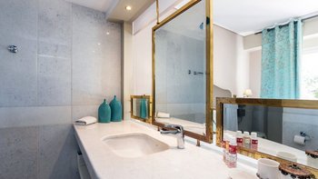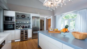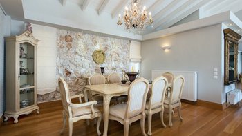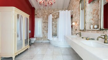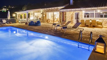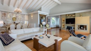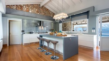 Modernes Design mag manchmal schlau, aber seelenlos erscheinen, aber Villa Las ist ein schöner Beweis dafür, dass „zeitgemäßer“ Charakter beinhalten kann. Mit Dekor und Möbeln in cremeweißen und sanften Erdtönen bildet das weitgehend aufgeräumte Interieur der Villa den perfekten Rahmen für eklektische Highlights, von freiliegenden Steinmauern bis hin zu aktuellen Kunstwerken, komischen Kissen auf klassischen Stühlen und einem Kronleuchter, der von roten Glaskugeln tropft, im großen Badezimmer der Master Suite. Deren Villa verfügt über ein schickes und geräumiges Wohnzimmer mit einer hohen Fachwerkdecke, riesigen Schiebetüren zur Terrasse und Zugang über einen Torbogen zur sehr stilvollen Küche.
