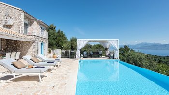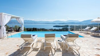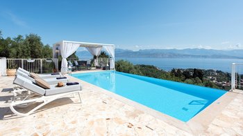 Mit atemberaubender Aussicht von der außergewöhnlichen Poolterrasse und geräumigen Innenräumen, stilvoll gestaltet, befindet sich diese Luxusvilla auf Korfu in ruhiger Lage und doch in der Nähe von Kassiopi.