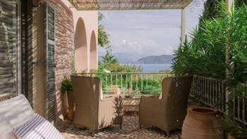 Ein einfaches charmantes Haus in herrlich landschaftlicher Umgebung, diese Villa auf Korfu ist eine feine Kombination aus Inselcharakter und modernem Design.