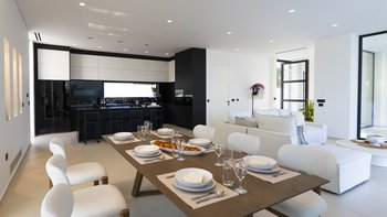 Die drei geräumigen Schlafzimmer, jedes mit eigenem Bad, bieten eine ruhige und private Oase und bieten Platz für bis zu sechs Personen in totalem Komfort. Der offene Wohn- und Essbereich ist hell und einladend, mit sanften neutralen Farbtönen und großen Fenstern, die das Licht anziehen. Eine voll ausgestattete Küche sorgt für ein entspanntes, entspanntes Wohnen, perfekt für ein langes, entspanntes Frühstück oder ein intimes Abendessen mit Ihren Lieben.