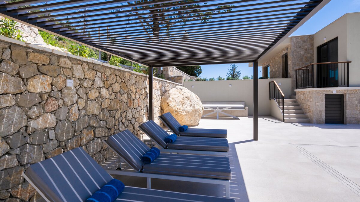Die Villa Odessa liegt auf einem ruhigen Hügel, umgeben von Olivenhainen und Zypressen, und bietet einen Panoramablick auf die Skorpione und die umliegenden Inseln Lefkada. Deren Nähe zur charmanten Hafenstadt Nidri, die nur 20 Minuten zu Fuß entfernt ist, und zum malerischen Strand Pasa, der in wenigen Minuten zu Fuß erreichbar ist, sorgt für einen bequemen Zugang zu lokalen Annehmlichkeiten und dem Glück am Meer.