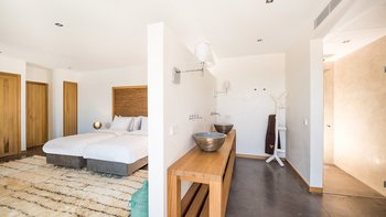 Das Hauptschlafzimmer im Erdgeschoss mit eigenem Bad führt direkt auf die stilvolle Terrasse, den Privater Pool und die Gärten, die viel Platz zum Entspannen in der Sonne bieten. Es gibt zwei weitere Zweibett-Schlafzimmer im Erdgeschoss, zusammen mit einem Spielzimmer, um die Kinder zu beschäftigen. Dessen zweite Etage verfügt über eine OFFENER GRUNDRISS Küche und einen Ess- und Wohnbereich, die beide auf Terrassenbereiche mit atemberaubender Aussicht führen. Es gibt ein weiteres Hauptschlafzimmer mit eigenem Bad sowie ein drittes Zweibett- und Duschbad.
