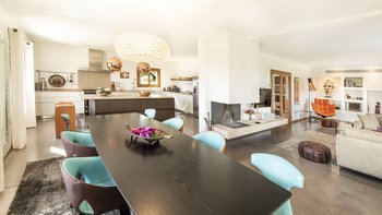 Diese moderne und stilvolle Villa, exquisit gestaltet, strahlt Klasse und guten Geschmack aus, und der gemeinsame Tennisplatz wird diejenigen ansprechen, die einen aktiveren Urlaub verbringen möchten.