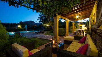 In abgeschiedener, ländlicher Lage und dennoch nur 3 km von Pollensa und 6 km von Puerto Pollensa entfernt, ist diese sehr beliebte Villa eine gute Wahl für einen Familienurlaub. In einem 6000 m² großen Garten gelegen, ist die Villa großzügig geschnitten und durchdacht ausgestattet, drinnen und draußen, und fördert das Leben im Freien mit einem eingebauten Grillplatz und großen schattigen, mit Weinreben bedeckten Terrassen, die zum Essen und Entspannen eingerichtet sind. Im Inneren gibt es ein luftiges Wohnzimmer mit hoher Decke mit Essbereich und Zugang zu den Terrassen, eine separate moderne Küche mit Frühstücksbereich und einen Hauswirtschaftsraum. Von einem Ende des Esszimmers gelangt man in das hübsche, geräumige, helle Hauptschlafzimmer mit eigenem Bad. Ein Flur vom Essbereich führt zu zwei weiteren Zweibettzimmern mit aufwendigen Kunstwerken, eines mit eigenem Bad und eines mit angrenzendem Badezimmer. Der Pool liegt zwischen großen Sonnenterrassen und es gibt weitläufige Rasengärten auf der Rückseite des Hauses. Frühzeitige Buchung ist erforderlich.
