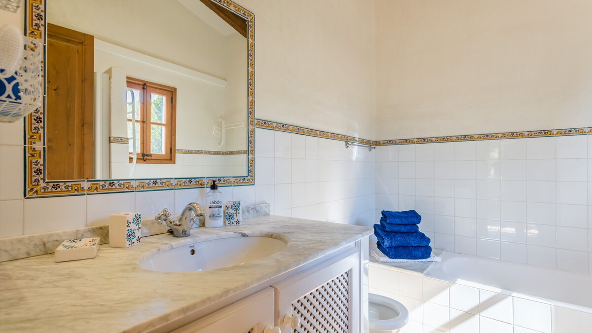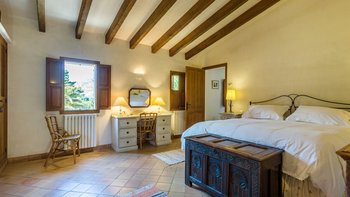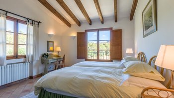 Im Obergeschoss sind die vier Schlafzimmer im sehr attraktiven Landhausstil mit typisch mallorquinischen Stoffen eingerichtet. Clever angelegte Gartenanlagen, die in sommerlichen Farben erstrahlen, tragen zur ländlichen Entspannung bei, und der Kochservice könnte einen spürbaren Beitrag zu entspannten Tagen leisten. Um das Tempo zu erhöhen, ist Alcudia nur 5 km von der Villa entfernt, mit einem beliebten Strand, Geschäften, Restaurants und einem römischen Theater. Deren charmante Stadt Pollensa mit einer großen Auswahl an Restaurants und guten Einkaufsmöglichkeiten ist nur 8 km entfernt, und der 18-Loch-Golfplatz Alcanada ist einer von mehreren guten Golfplätzen in der Nähe.