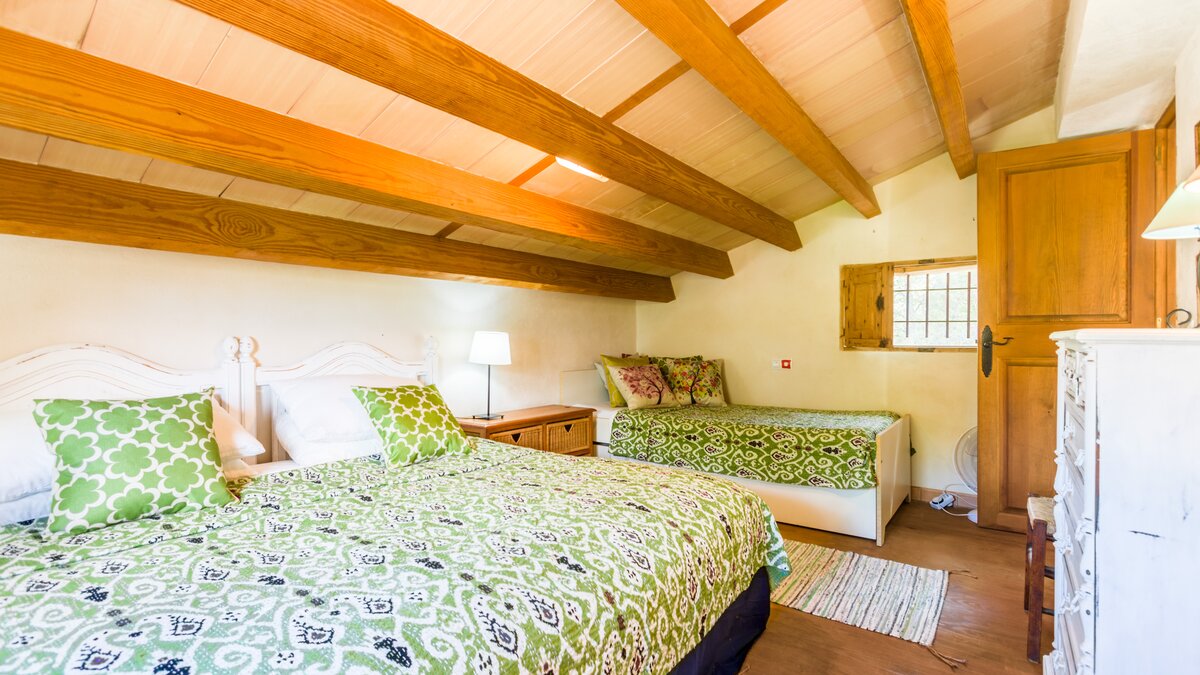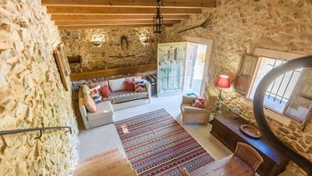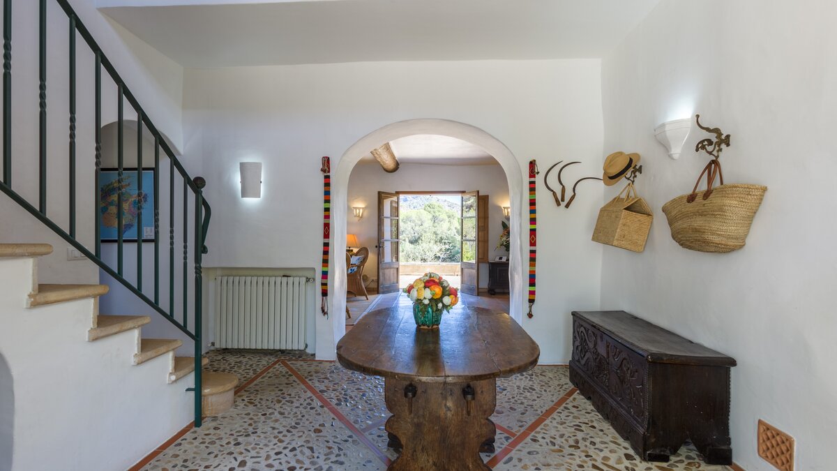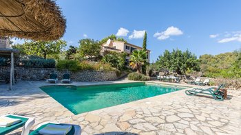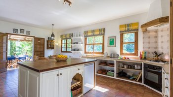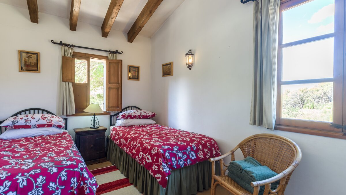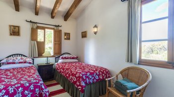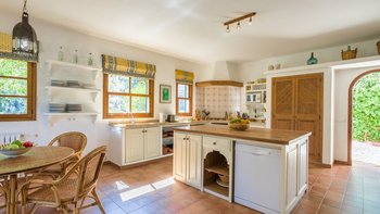 Eingebettet in die Hügel hinter den Buchten von Alcudia und Pollensa, mit ruhigem Blick auf das Tramuntana-Gebirge, ist Ca’n Isabella eine liebevoll restaurierte mallorquinische Finca auf einem kleinen Privatgrundstück von ca. 20 Hektar, wo geräumige und aufgeräumte Zimmer im komfortablen Landhausstil eingerichtet sind. Ein großes Wohn-/Esszimmer mit vielen Fenstern und einem Holzofen, dem Herzstück des Hauses, wird durch ein Arbeitszimmer ergänzt, das auch als Spielzimmer dienen kann. Es öffnet sich auf eine schattige Veranda und einen weichen Sitzbereich mit Blick auf die Gärten und einem herrlichen Blick auf das Tal. Von hier aus führt eine Treppe hinunter zu einem großen 12-Meter-Pool, der von niedrigen Steinmauern umgeben ist und mit einer möblierten Pergola auf der gepflasterten Poolterrasse ausgestattet ist. Vielleicht gönnen Sie sich ein kurzes Training in der Sonne, dank der neu eingerichteten Fitnessgeräte mit Hanteln, Glocken und Yoga-Matten, die ideal sind, um sich im Urlaub fit zu halten.