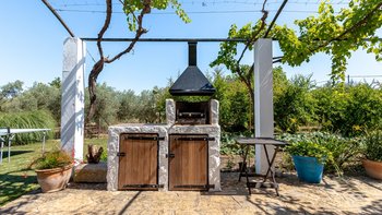 Im Freien gibt es eine große Terrasse, auf der die Gäste einen Morgenkaffee oder ein leichtes Mittagessen im Schatten genießen können. Für die Mahlzeiten im Freien steht der eingebaute Grill zur Verfügung, damit alle am Kochen teilnehmen können. Der private Swimmingpool bietet eine erfrischende Flucht an warmen Tagen und der weitläufige 8.016 m² große Garten bietet einen üppigen Spielplatz für Outdoor-Aktivitäten.