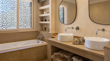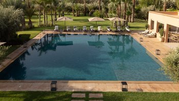 Das in der exklusiven Palmeraie gelegene Dar Palmera ist ein ruhiges Privatanwesen, in dem moderner Komfort auf authentisches marokkanisches Handwerk trifft. Dieser elegante Refugium wurde für anspruchsvolle Reisende entworfen und bietet Platz für bis zu zehn Personen in fünf schönen Zimmern mit eigenem Bad, jedes mit eigener Terrasse und zeitlosem Interieur, das mit handgewebten Stoffen, Souksfunden und kuratierter Kunst überlagert ist.
