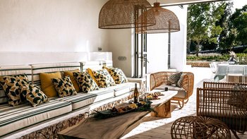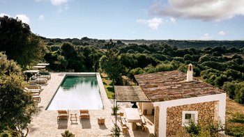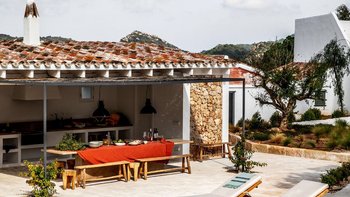 Mit herrlichem Blick auf die wunderschöne Landschaft und verschiedene Terrassen, die verschiedene Orte zum Essen im Freien, Entspannen und Sundownern bieten, wurde dieses prächtige Anwesen auf Menorca sorgfältig mit viel Liebe zum Detail restauriert, um ein sehr komfortables und informelles Ferienhaus zu bieten, das mit interessanten Dekorationsobjekten ausgestattet ist, ergänzt durch schöne Möbelstücke, Teppiche, Kunstwerke und Fotografien, die der Eigentümer aus der ganzen Welt bezogen hat.