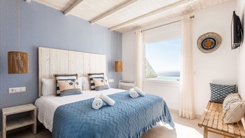 A calm and stylish retreat for two, with panoramic sea views and a private plunge pool overlooking the Mediterranean.