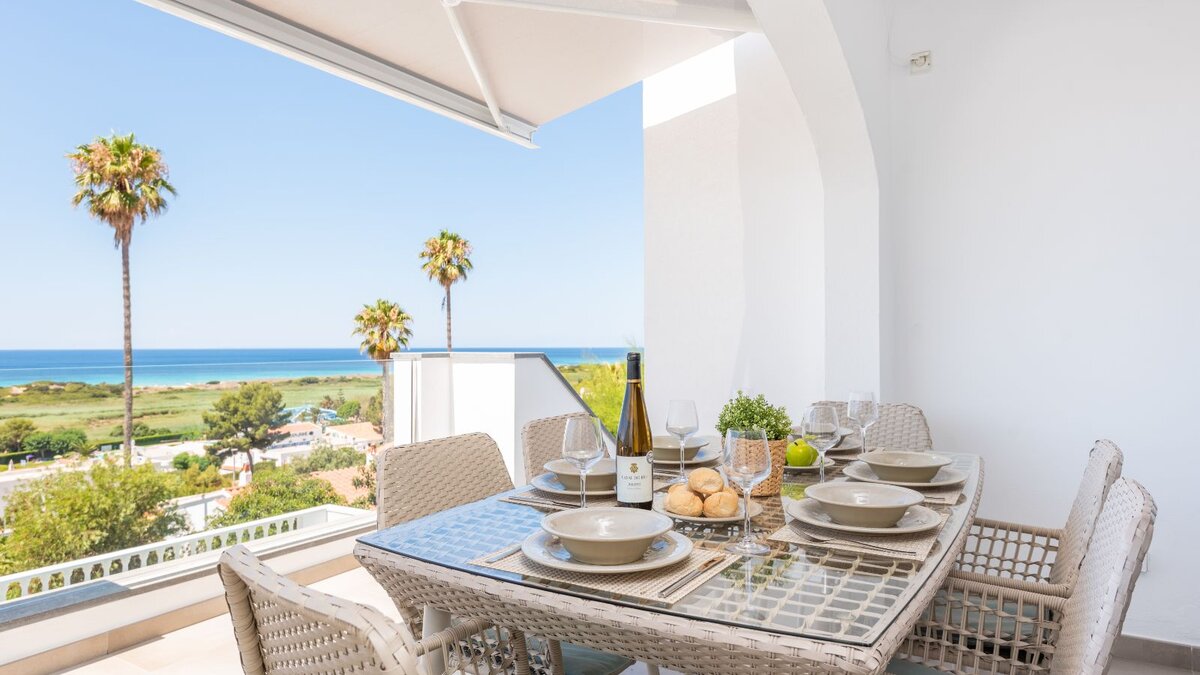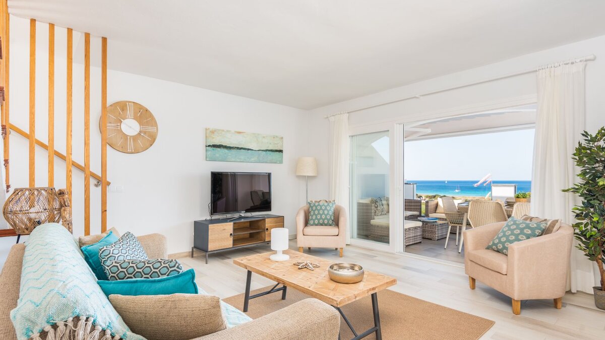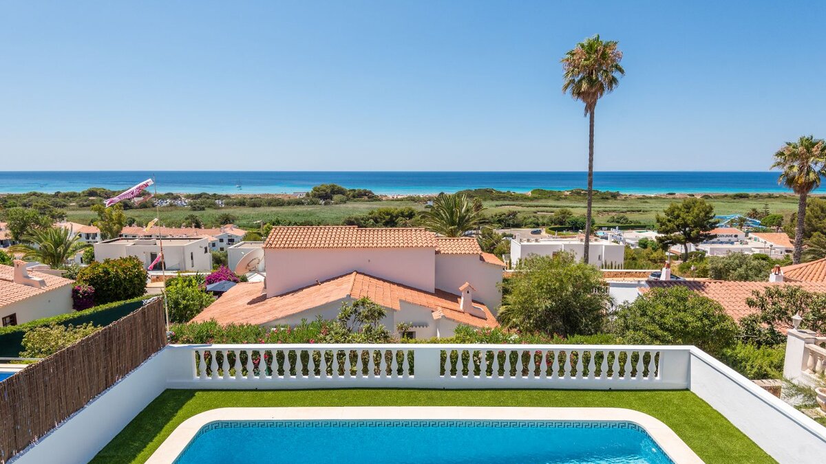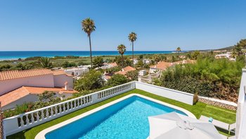 Eine raffinierte Küstenvilla mit modernem Komfort, freiem Meerblick und mühelosem Zugang zum goldenen Sandstrand von Son Bou.