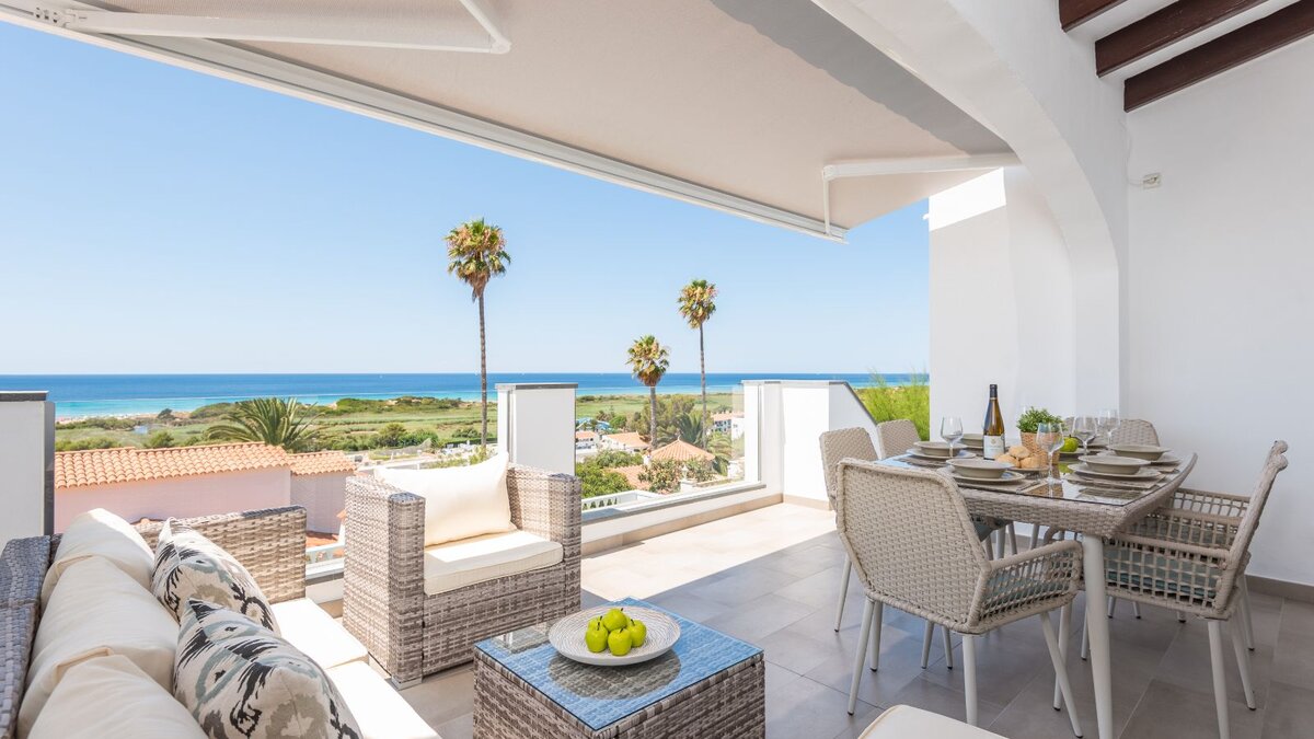 Die Villa Marnes ist eine wunderschön renovierte Doppelhaushälfte mit raffiniertem Komfort, modernem Design und weitem Blick auf das Mittelmeer. Sie erstreckt sich über zwei Ebenen und nur 500 Meter vom atemberaubenden Strand von Son Bou entfernt. Es bietet einen eleganten Rückzugsort in einer der privilegiertesten Lagen der Gegend.